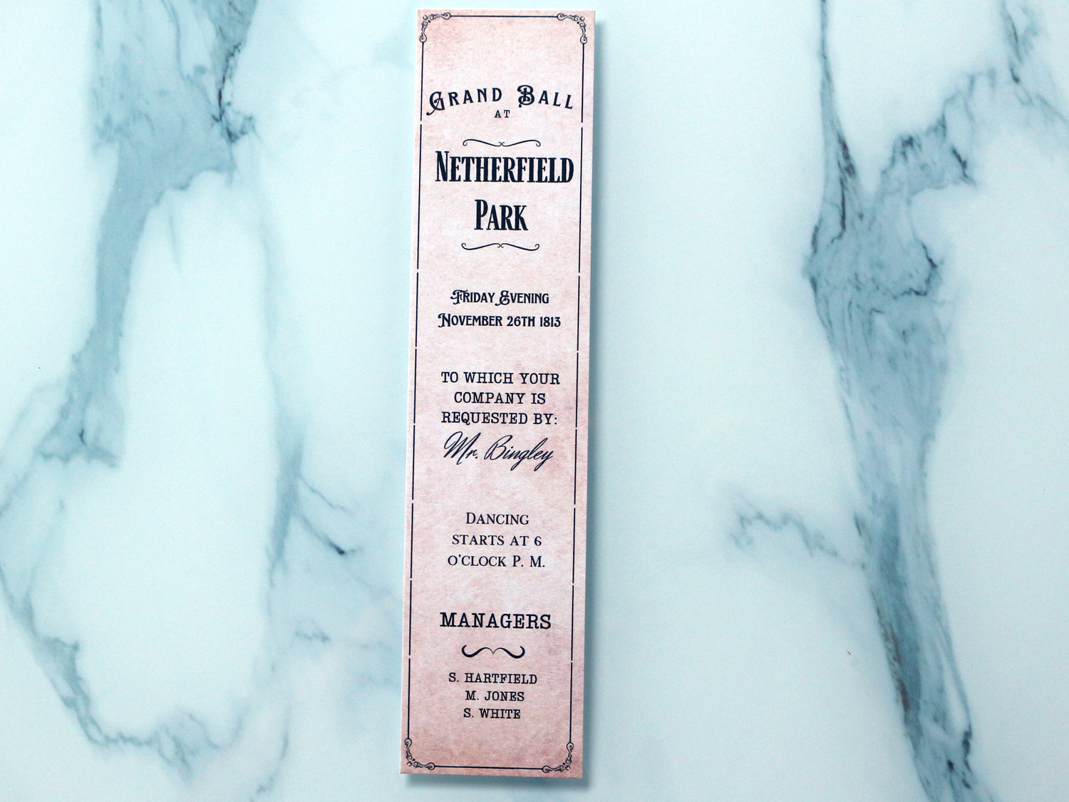 Pride and Prejudice Netherfield Ball Invitation Bookmark