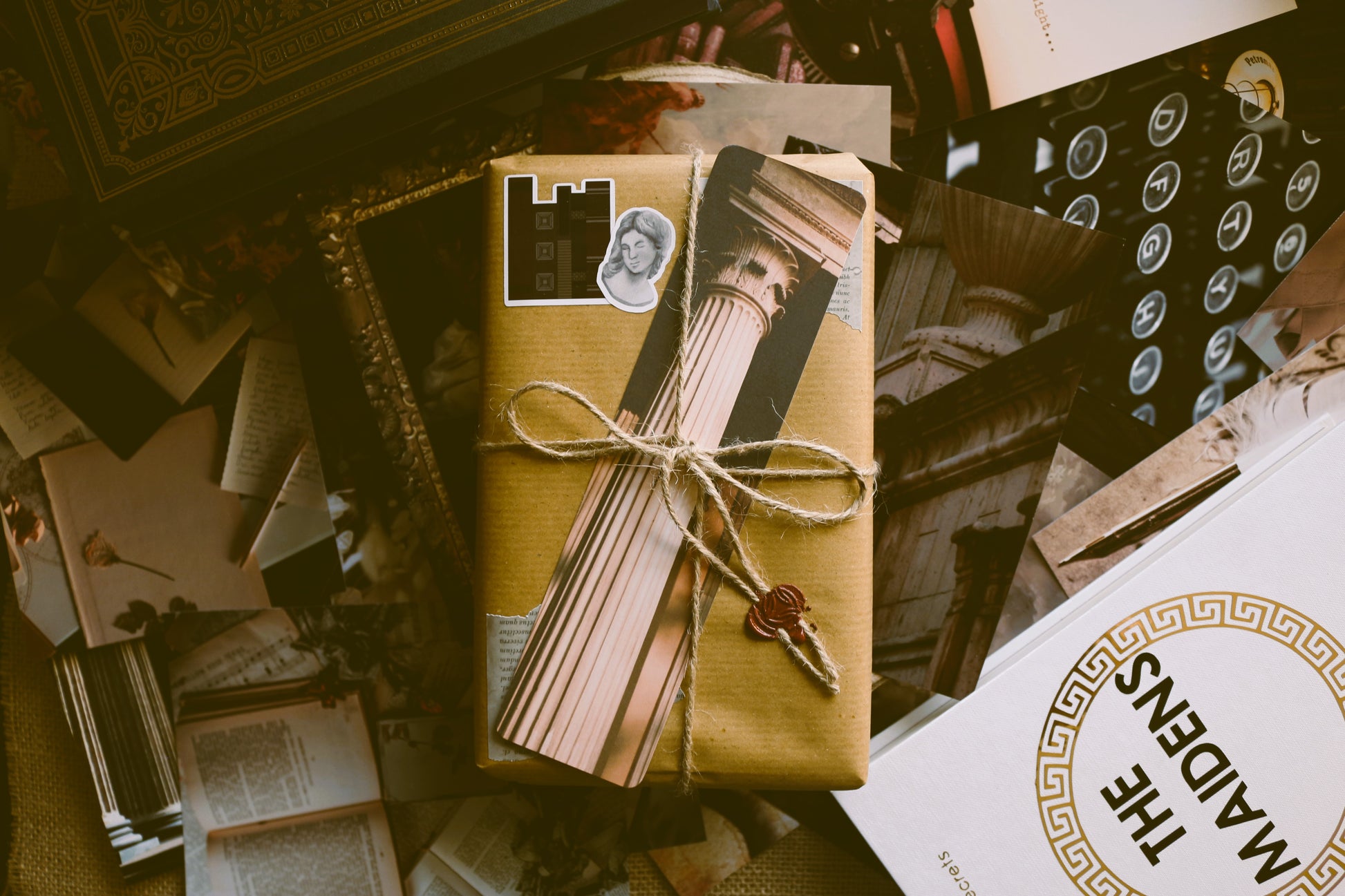Here we carefully select your next dark academia read and it will be (gently) pre-loved so extremely sustainable. The surprise book will be wrapped in brown kraft paper, tied with twine and finished with an elegant wax seal and some glossy aesthetic stickers.
