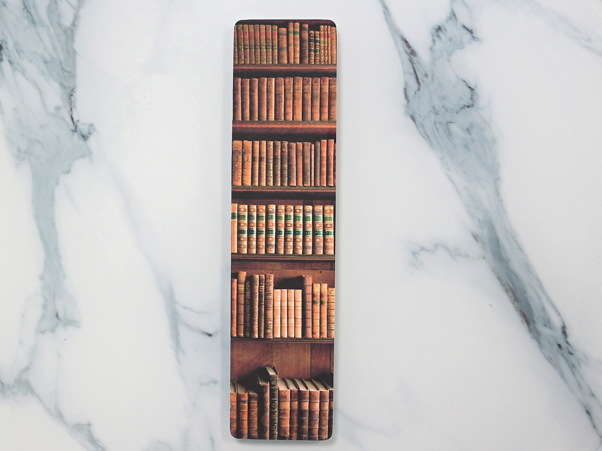 This gorgeous handmade bookmark brings the cozy comfort of library to you. . With an dark academia inspired bookcase on one side and a reading log on the other, it is the perfect way to keep track of your reading.