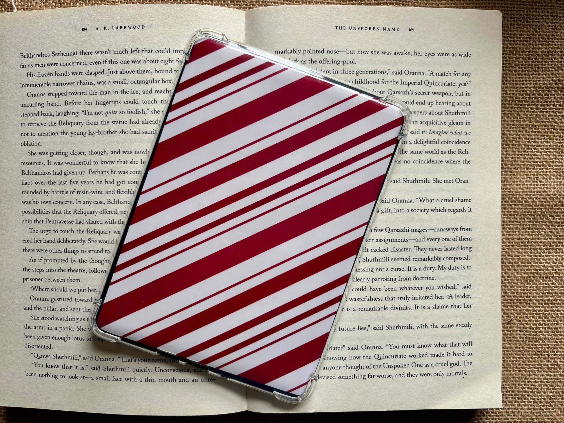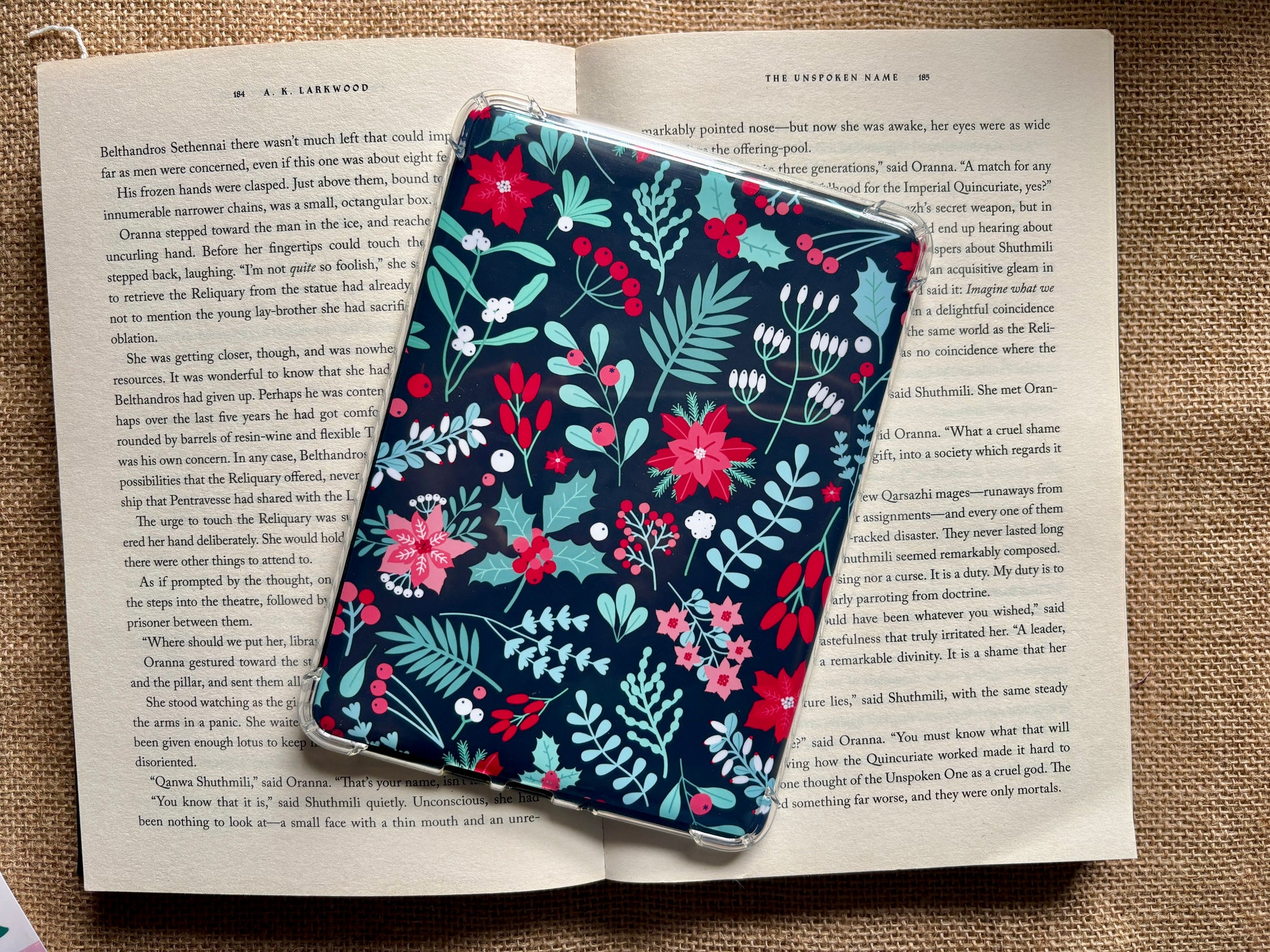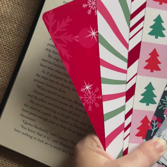 Each insert features a unique Christmas or winter design: bold red snowflakes, candy cane stripes, playful Christmas trees, holly and poinsettias, and a snowy woodland scene with the cosy bookish quote “Snow is falling, books are calling.” Together, they make a delightful collection that will keep your Kindle looking merry and bright all winter long.
