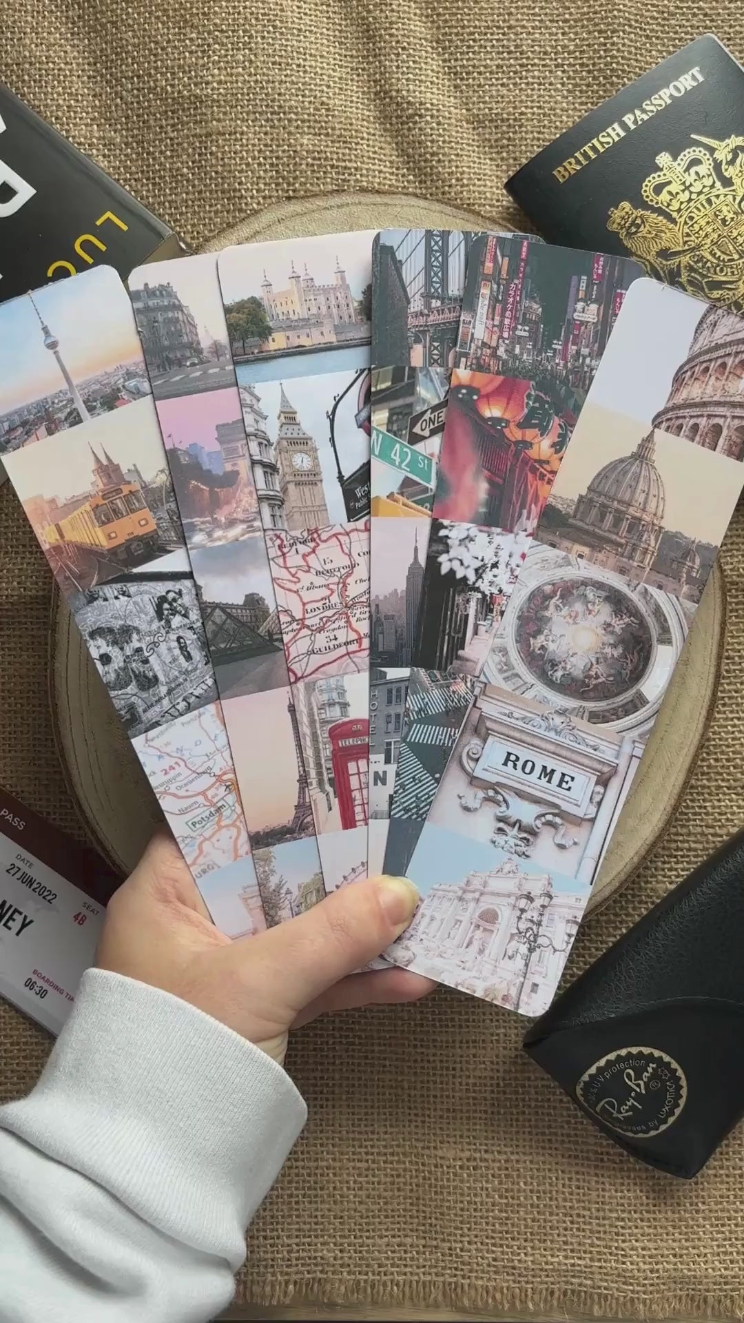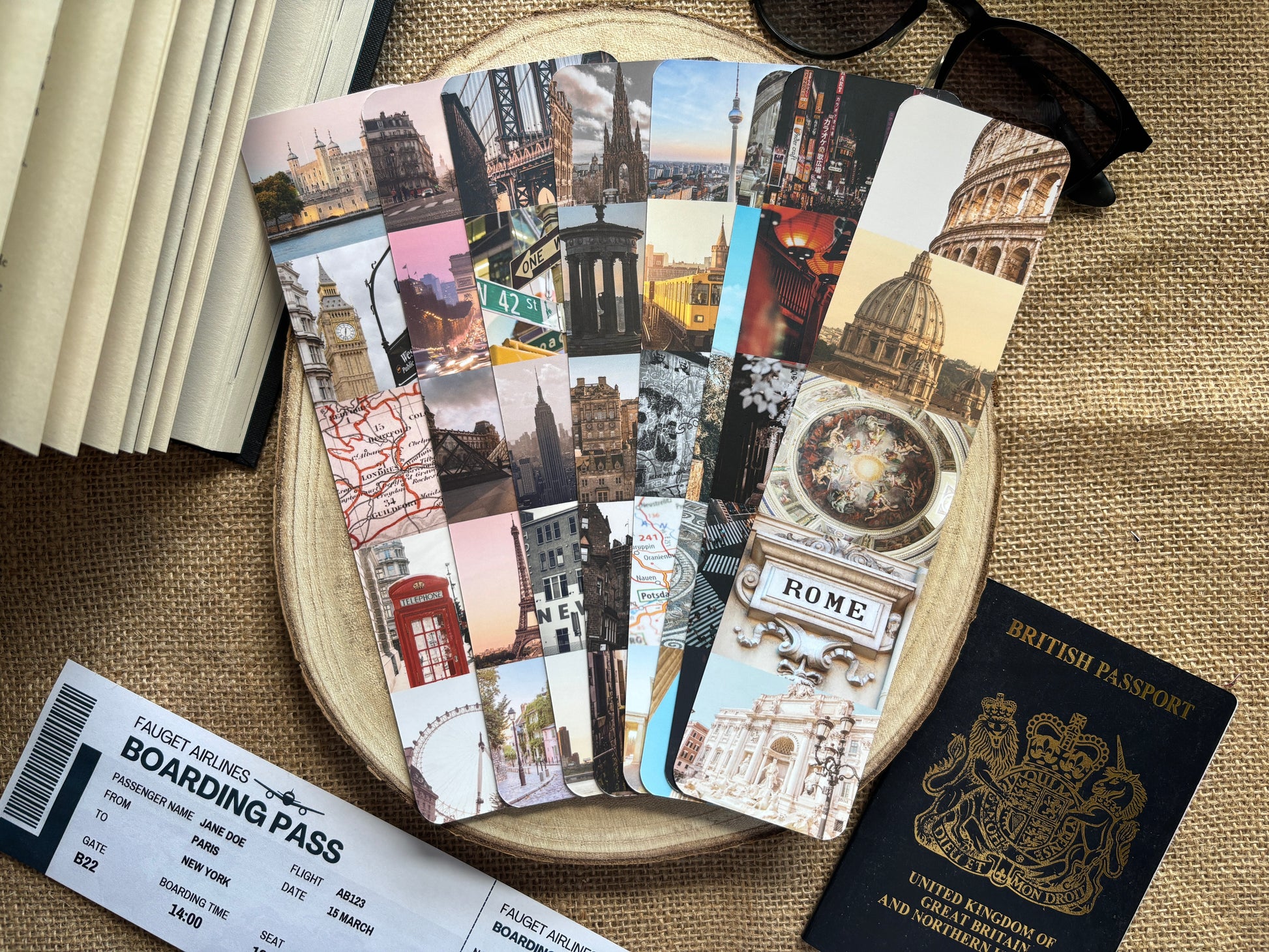 ✈️ Full set includes 8+ unique city bookmarks showcasing locations across the worldS (e.g., Paris, London, Berlin, Edinburgh).
