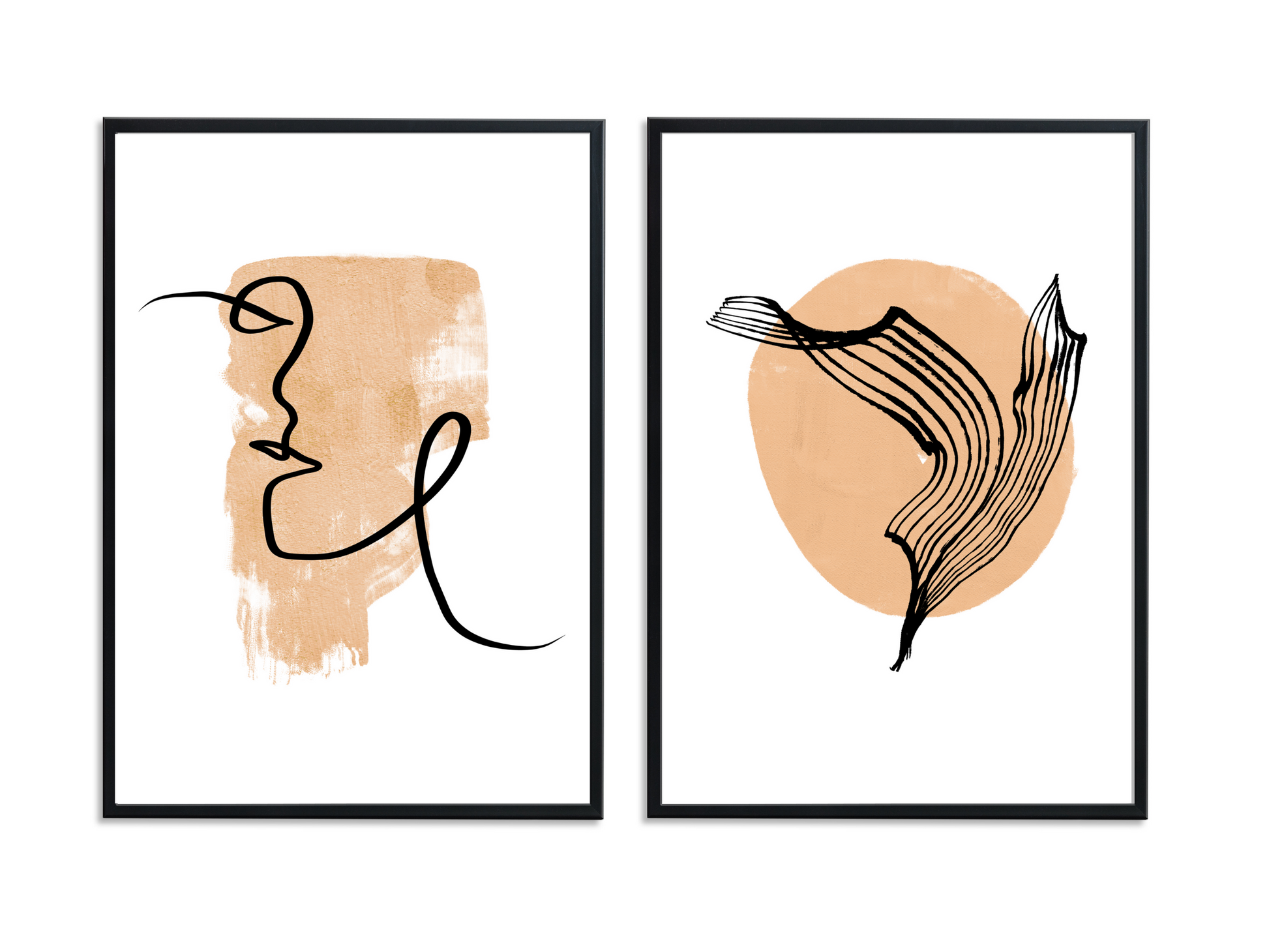 Abstract Nude Neutral Line Art Set of 2 Prints