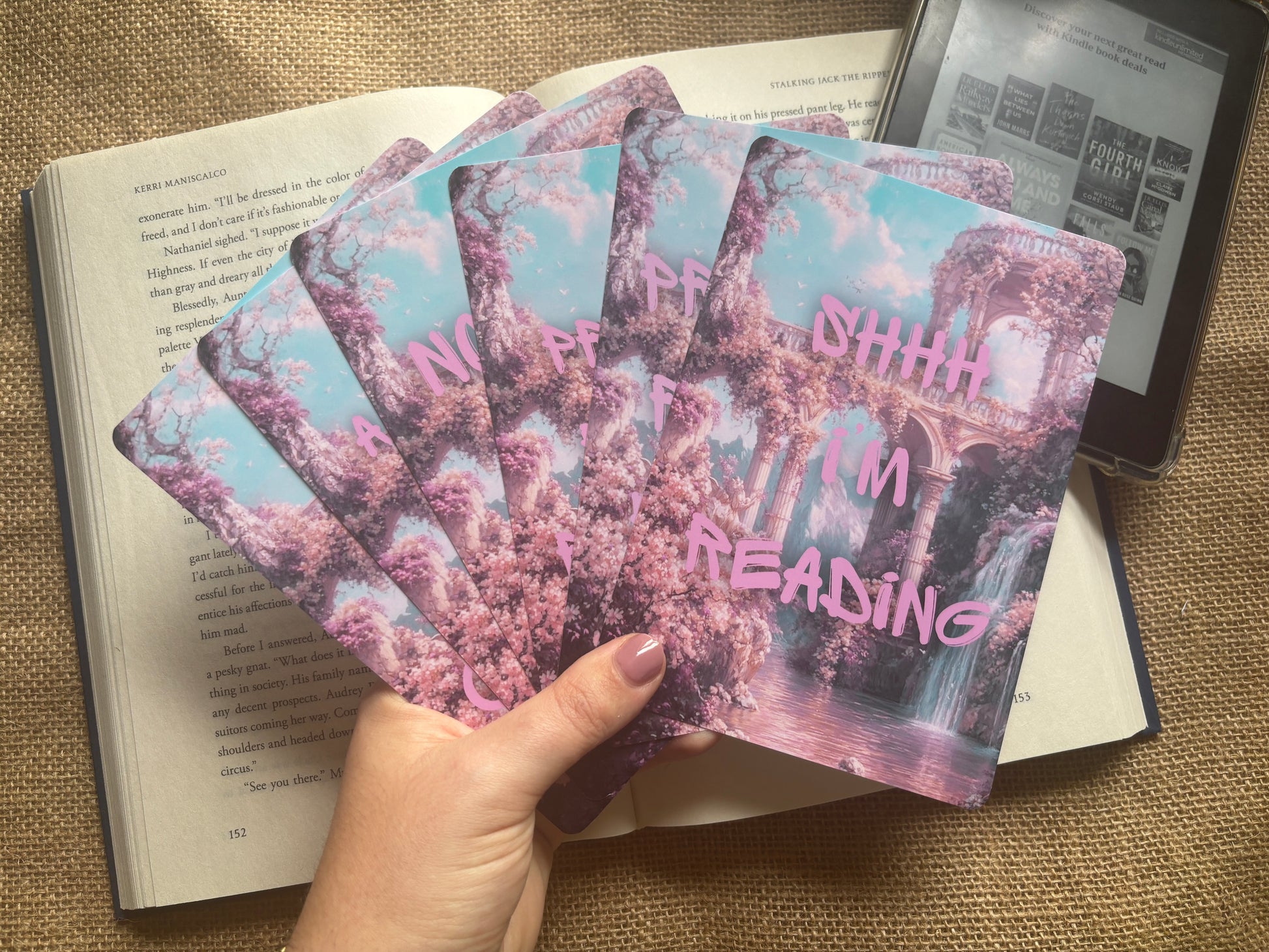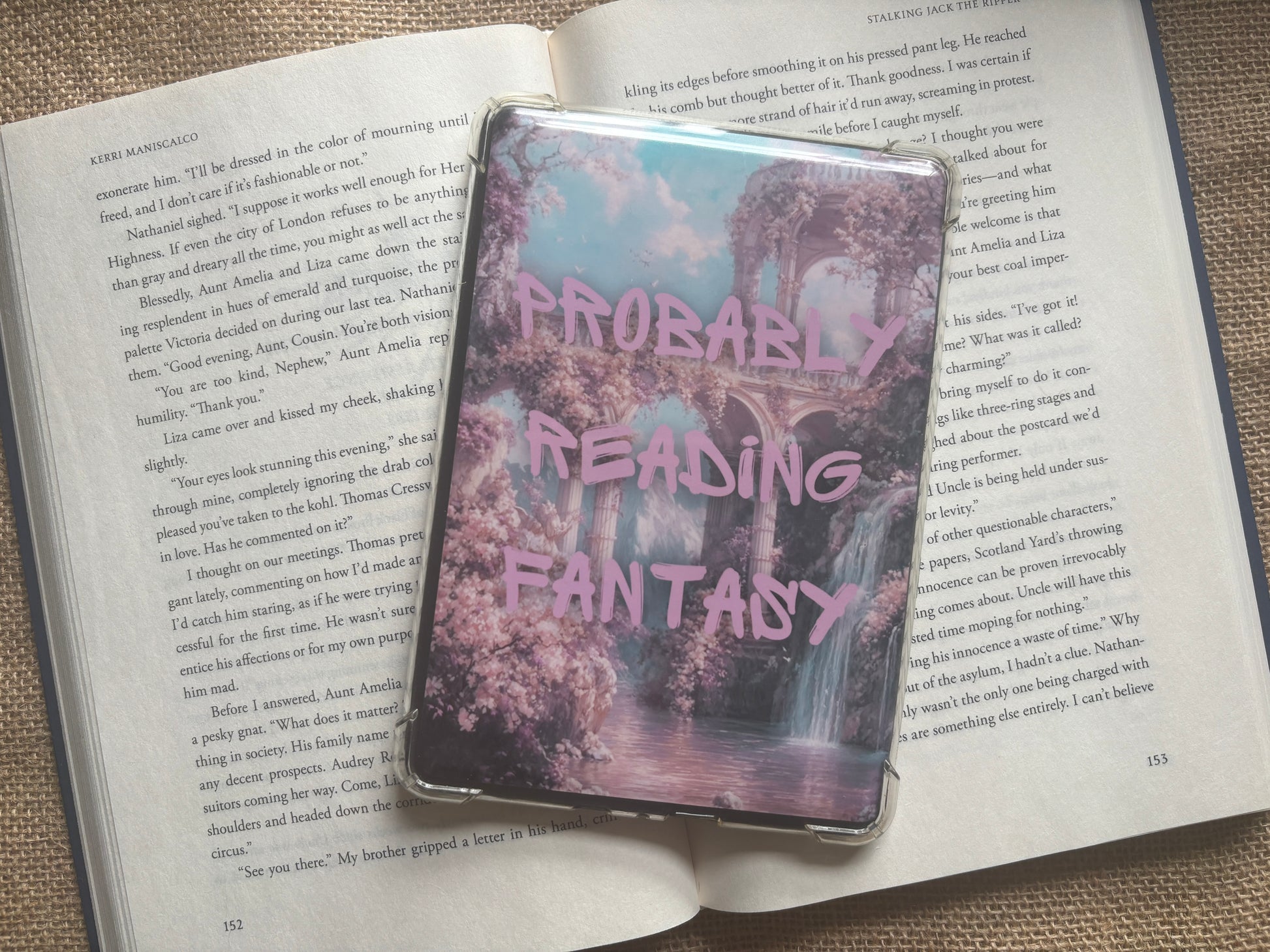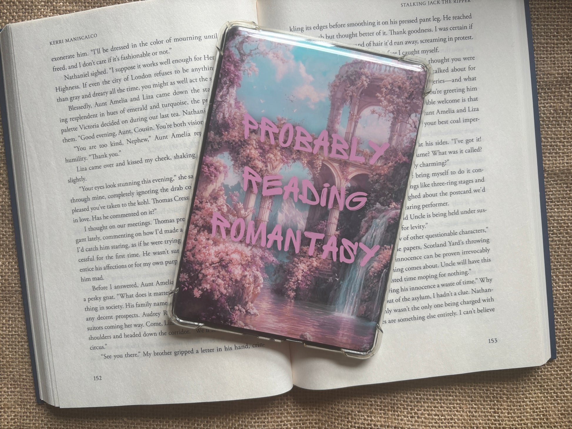 Transform your e-reader into a portal to another world with this enchanting Fantasy Kindle Insert Collection. Designed with soft pink and blue hues, delicate florals, and an elegant stone arch, each insert features a quote perfect for fantasy and romantasy lovers.