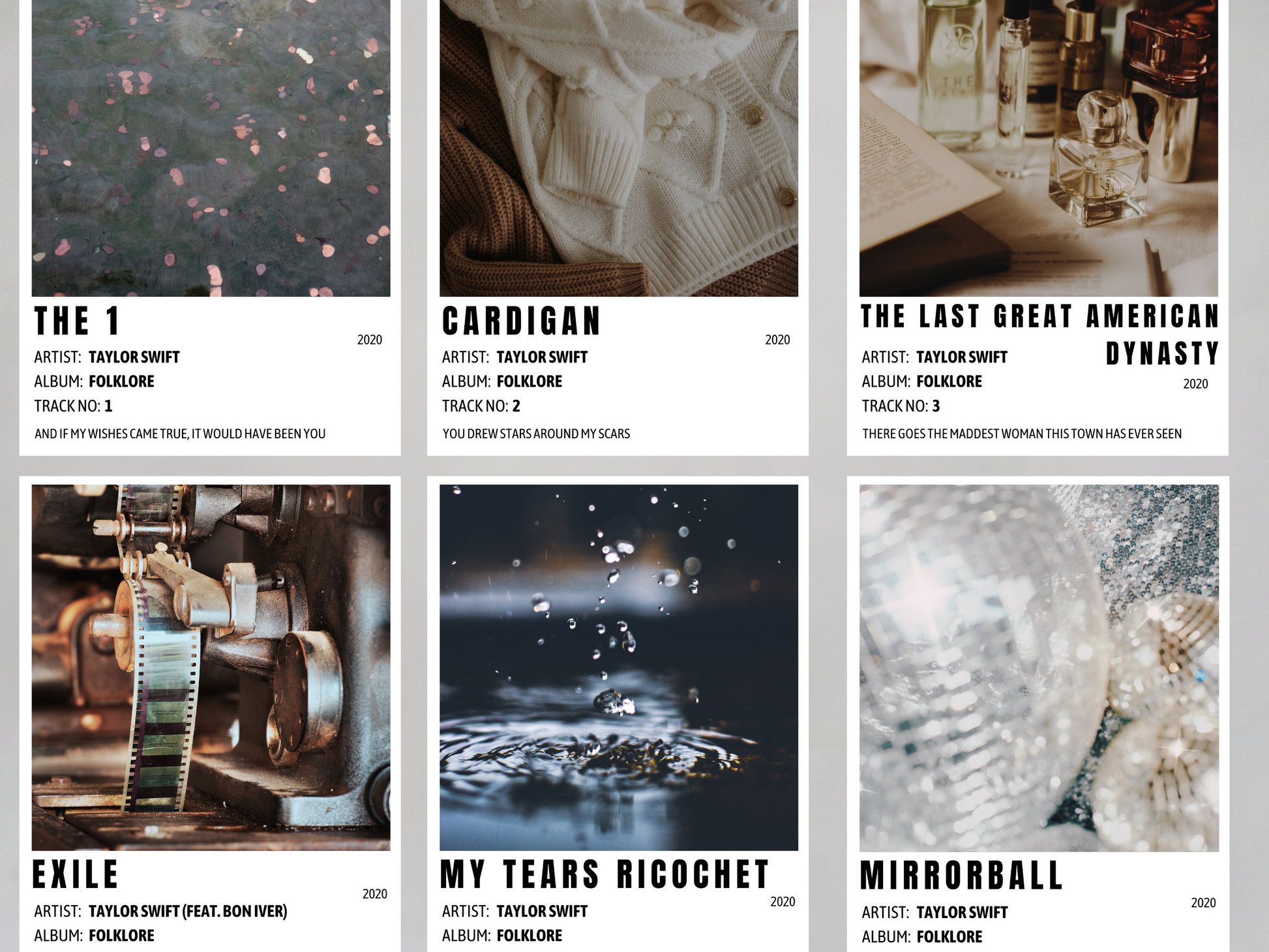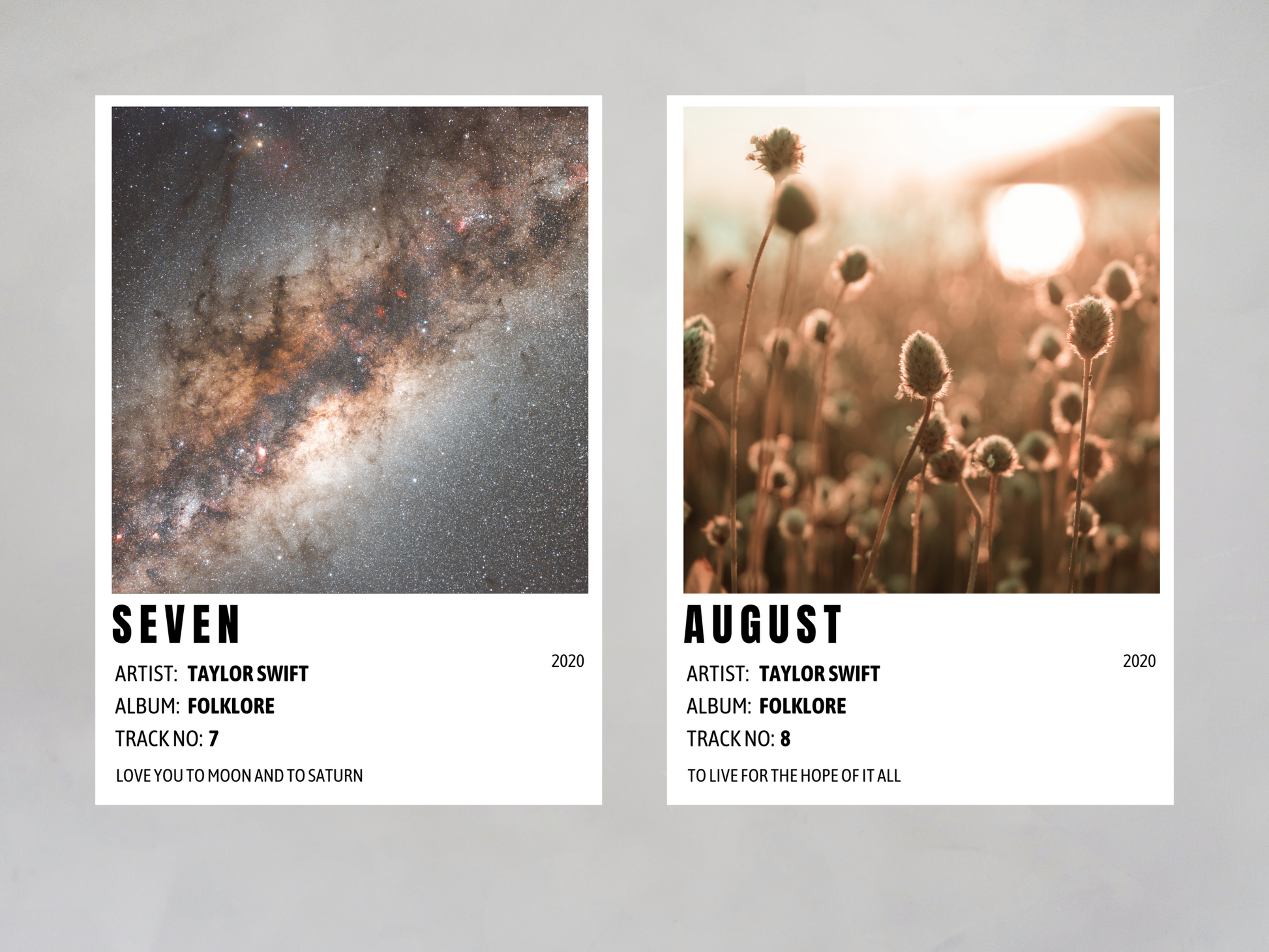 This set of 17 inspired postcards is perfect for the Swiftie fan. Inspired by each of her songs on the album 'Folklore', each postcard has been inspired by vintage polaroids to capture the essence of each song.