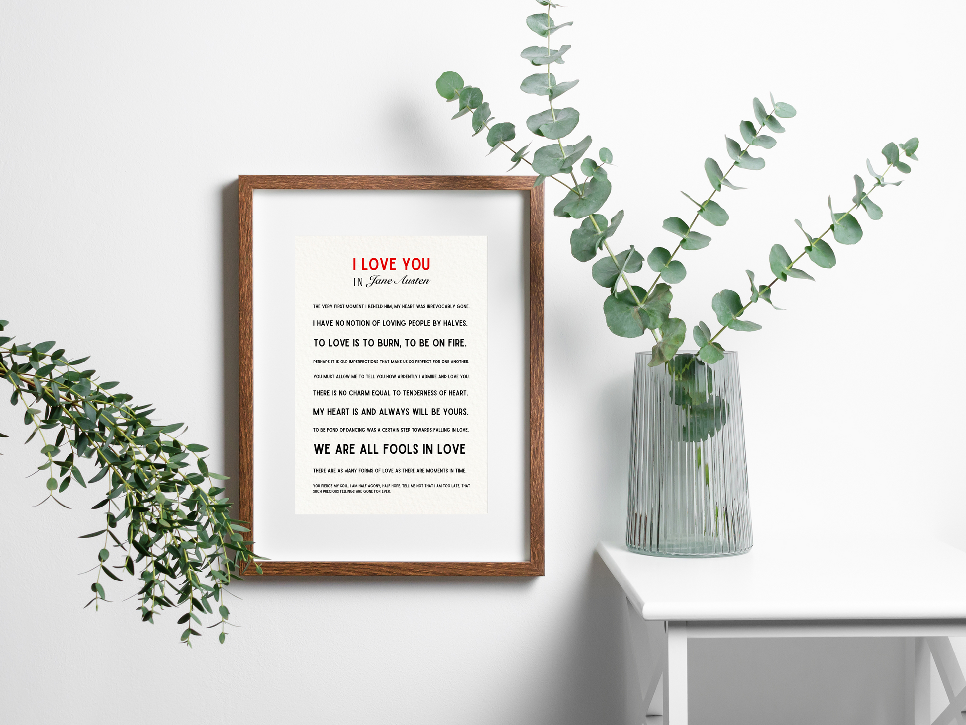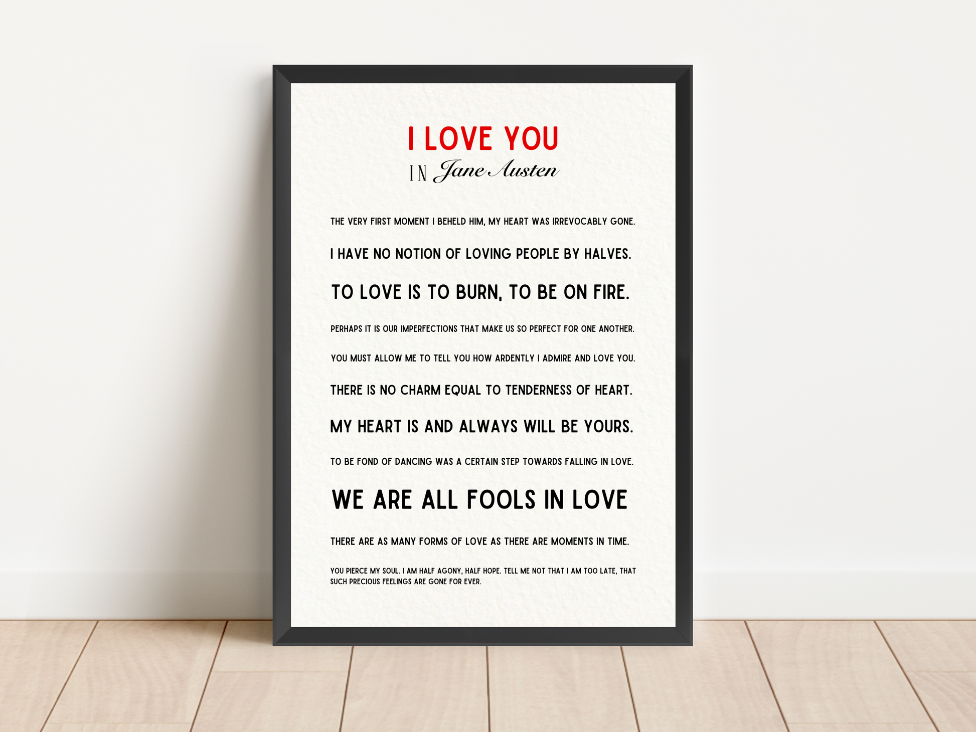 I Love You Jane Austen Quote Print