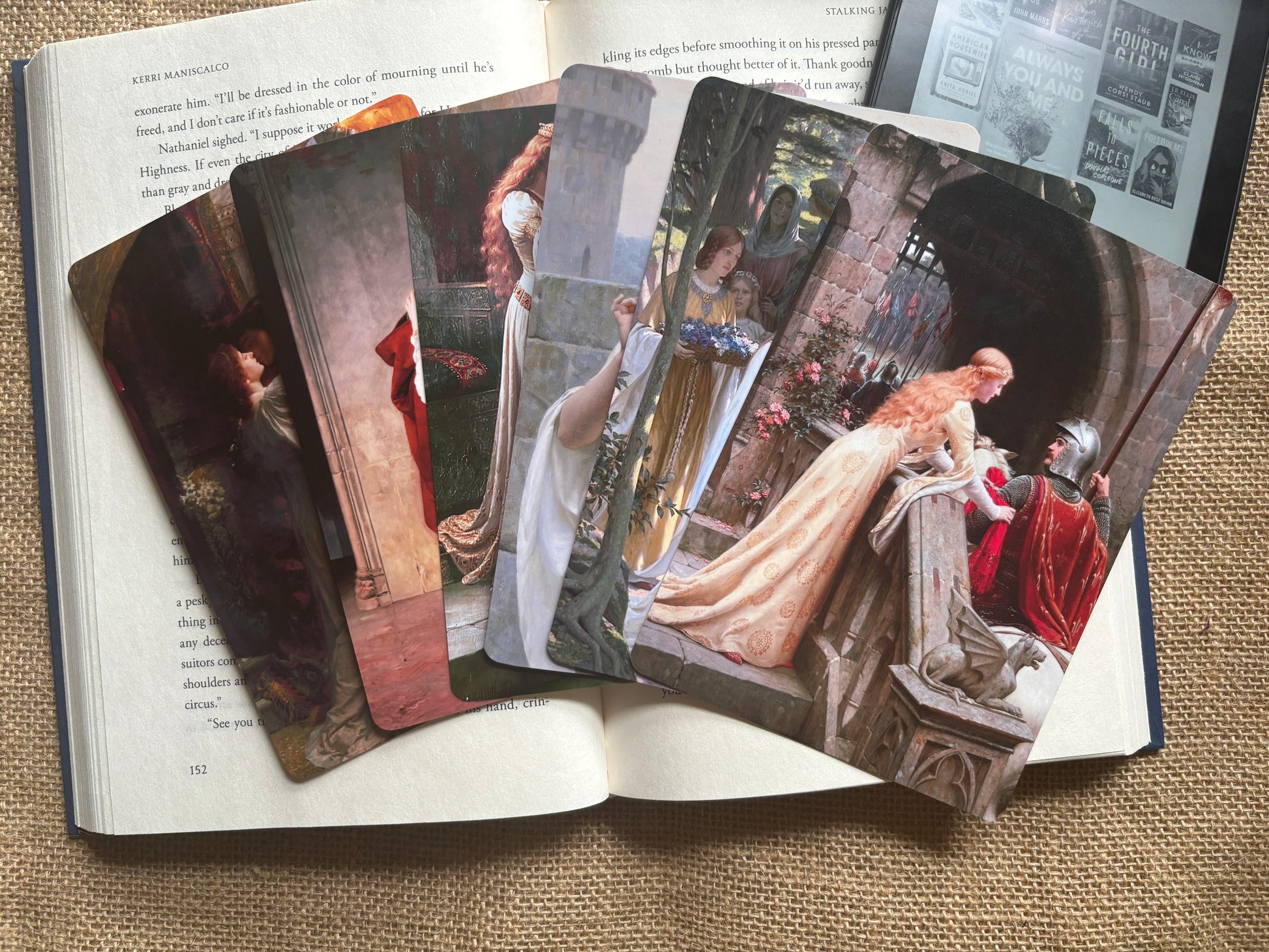 Transform your e-reader with this Romantic Fine Art Kindle Insert Set, featuring six breathtaking classical paintings by Edmund Leighton, Francesco Hayez, and Frank Dicksee. Inspired by themes of love, chivalry, and storytelling, these inserts add a touch of historical elegance to your Kindle Paperwhite or other clear-case e-readers.