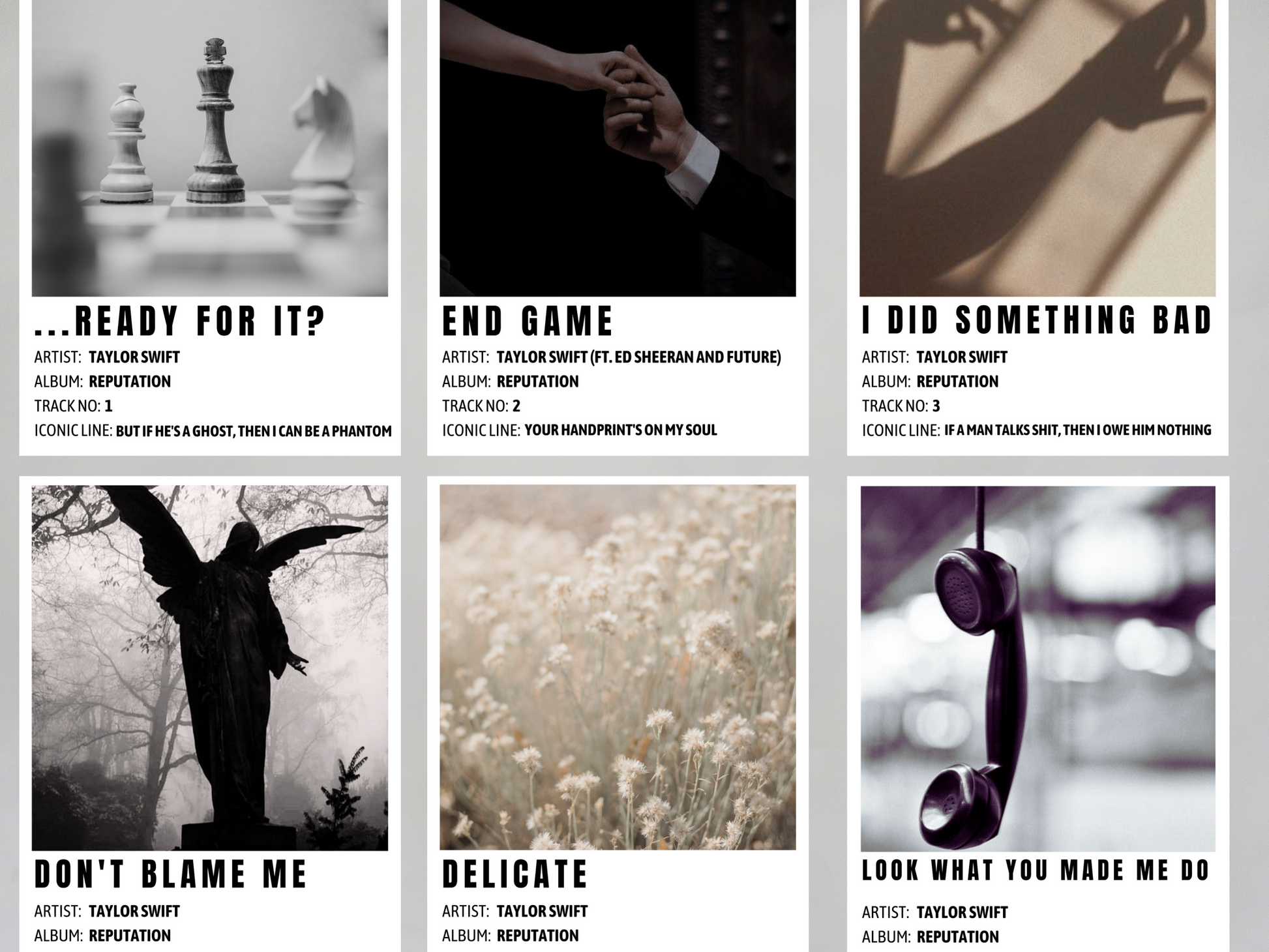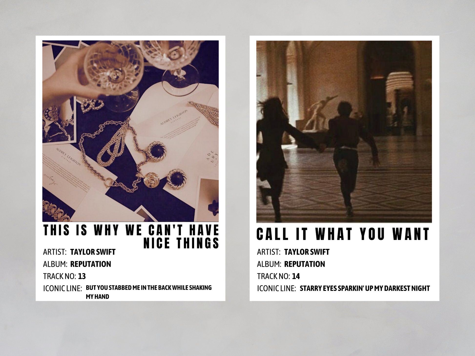 This set of 15 inspired postcards is perfect for the Swiftie fan. Inspired by each of her songs on the album 'Reputation', each postcard has been inspired by vintage polaroids to capture the essence of each song.
