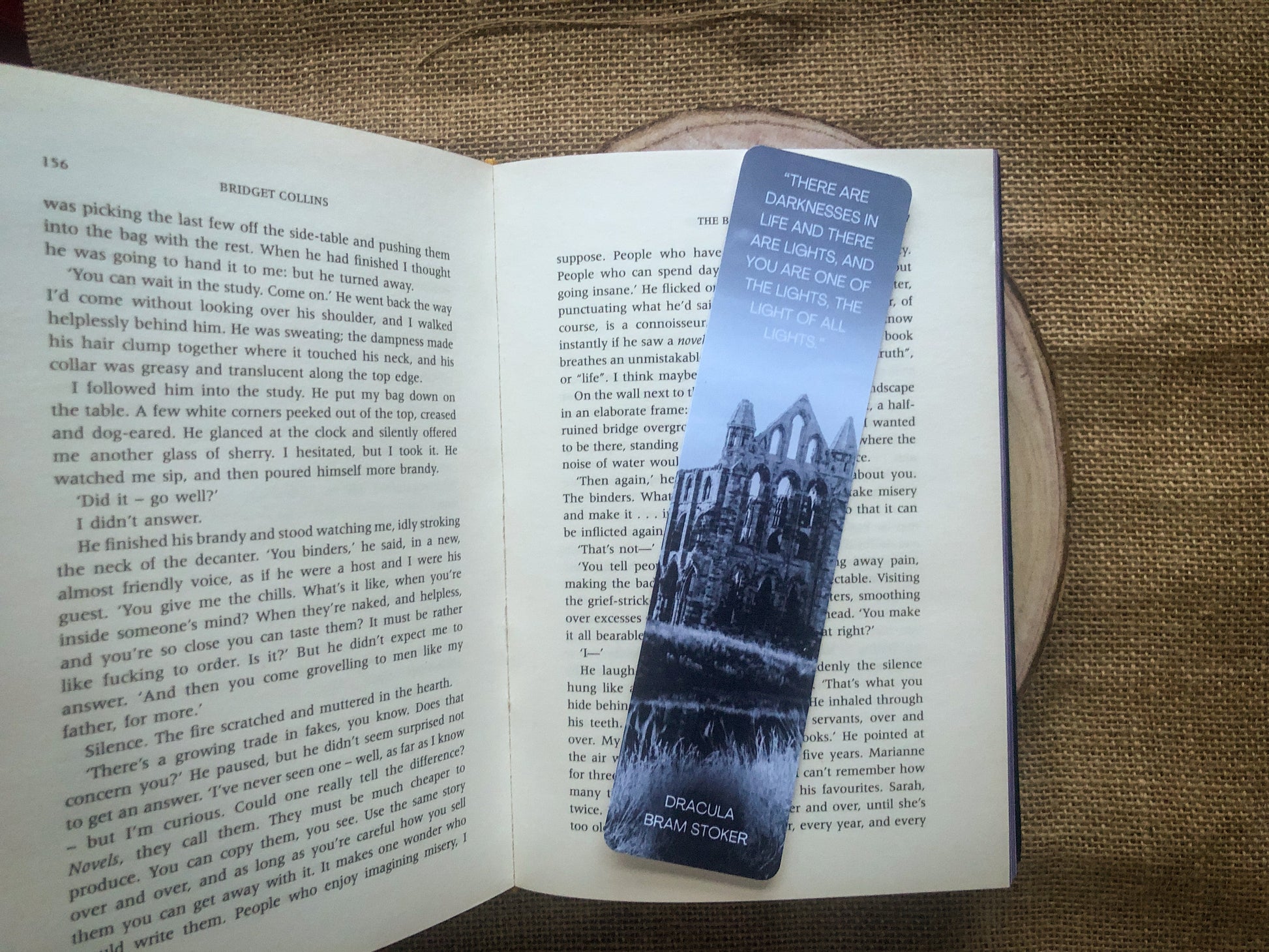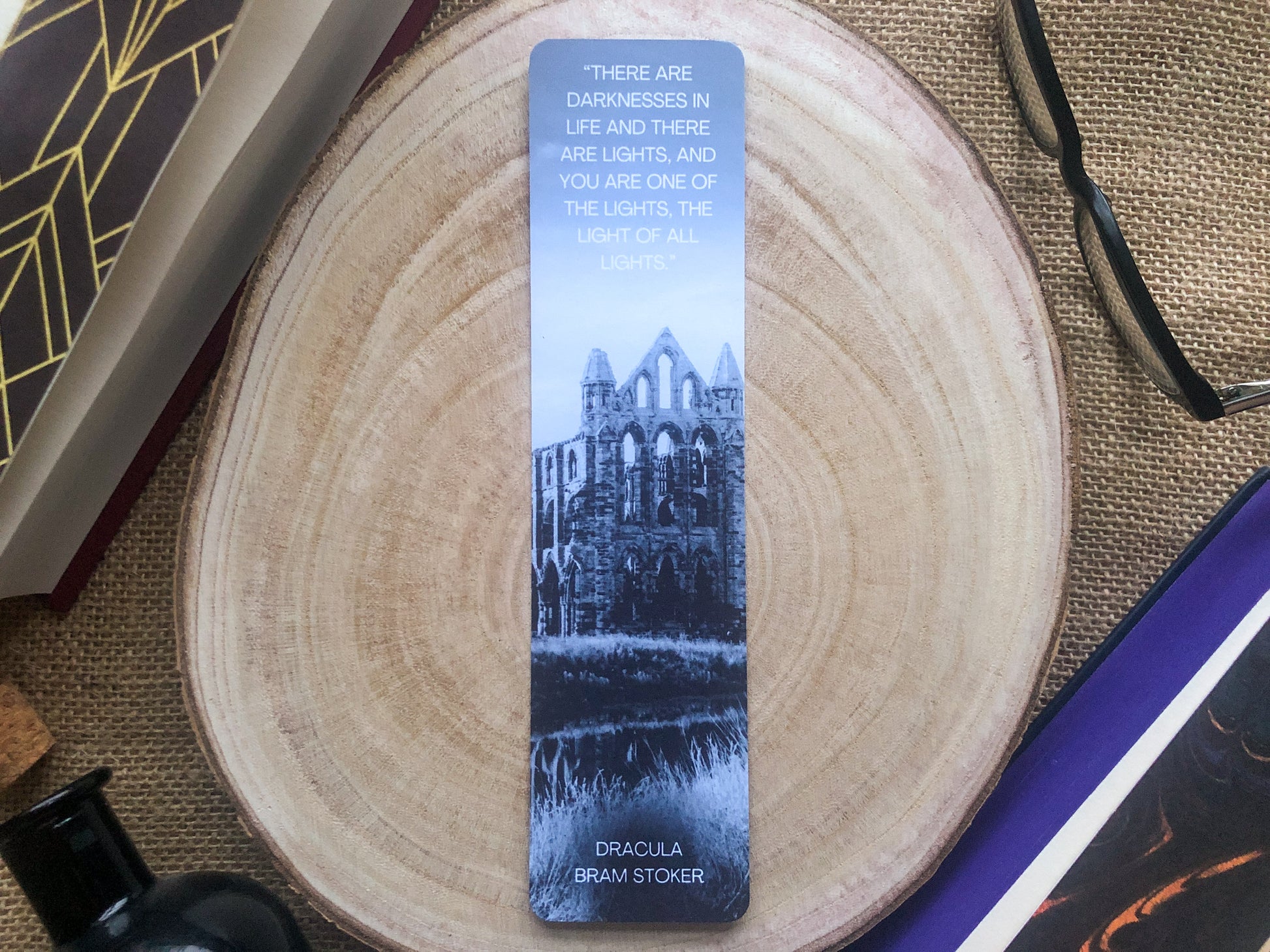 With the iconic Whitby Abbey at the forefront, this bookmark will transport you to the dark world of Bram Stoker's 'Dracula'. It is the perfect gift for fans of gothic horror or classic literature.